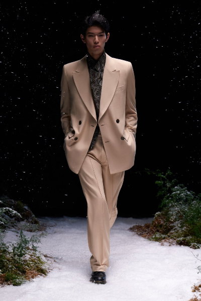 This season’s collection featured elegant silhouettes with slashed and cut -away details, further diving into the conversations of covering and uncovering, and evolving masculine and feminine identities.