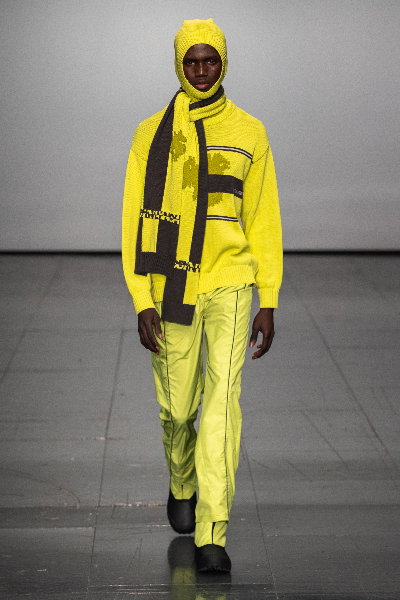 The collection, ‘The Last Run’, was Inspired by aprés-ski – but the name also acts as a call to action on climate change. The show notes point towards the now-disappearing seasonality of temperatures; there was a mix of cold and warm tones and outerwear with short-sleeved tops and shorts.