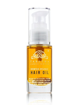 Also in a stylish glass bottle is the Tabitha James Kraan Scented Organic Hair Oil. This oil can be used before washing as a treatment or after to style. It can also restore and protect colour.