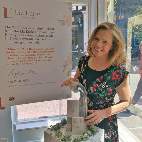 ‘I’m thrilled that my award-winning jewellery is on display in the window at Liberty London for two weeks this June. The Fair and Fine jewellery line is made exclusively from certified Fairtrade gold and silver from South America where the work of the Fairtrade Foundation has completely turned around the lives of artisan miners.