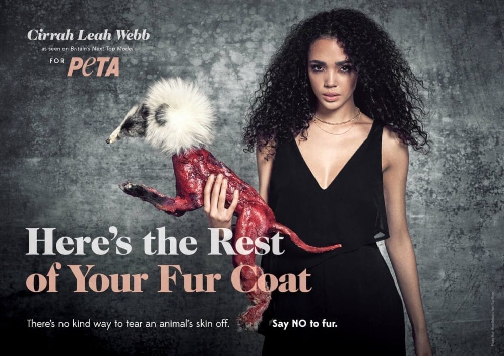 The contestants on Britain’s Next Top Model join a long list of celebrities – including Simon Cowell, Tom Hardy, Rylan Clark, Alexandra Burke and Little Mix – who have teamed up with PETA, whose motto reads, in part, that ‘animals are not ours to wear, use for entertainment, or abuse in any other way.’